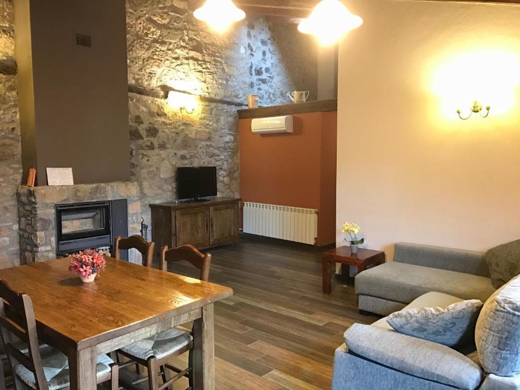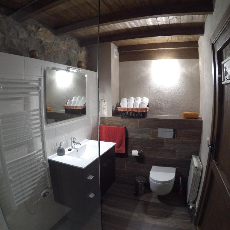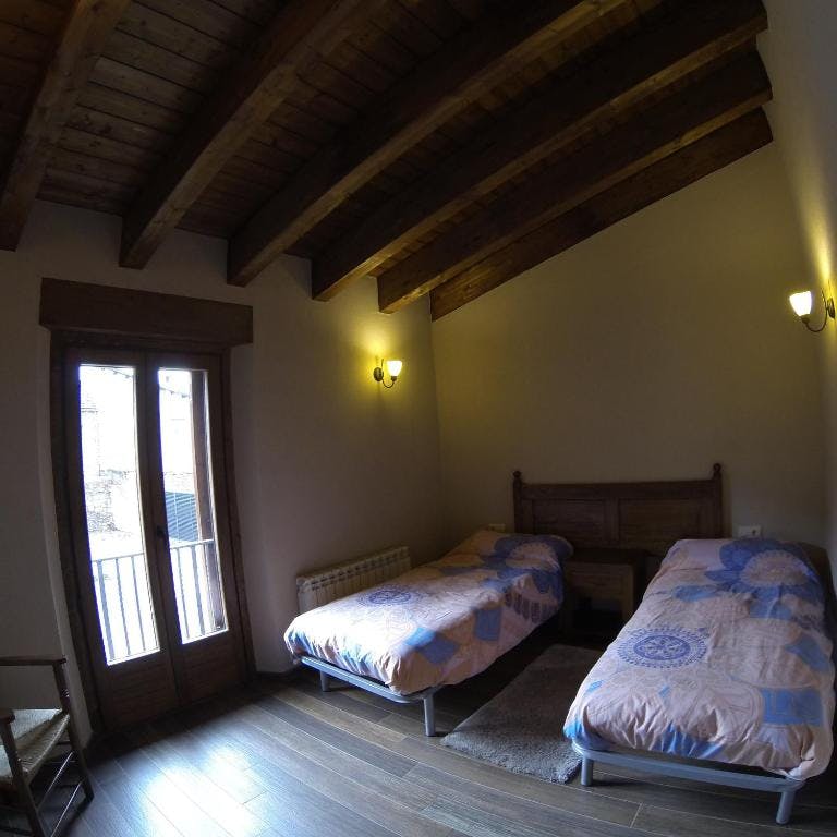 The flats Llevant and Ponent are located on the upper floor of the house, from the rooms you can see beautiful views of the village. They have a living room/kitchen with fireplace, biomass heating, TV, one bedroom with double bed, one bedroom with twin beds and a bathroom.